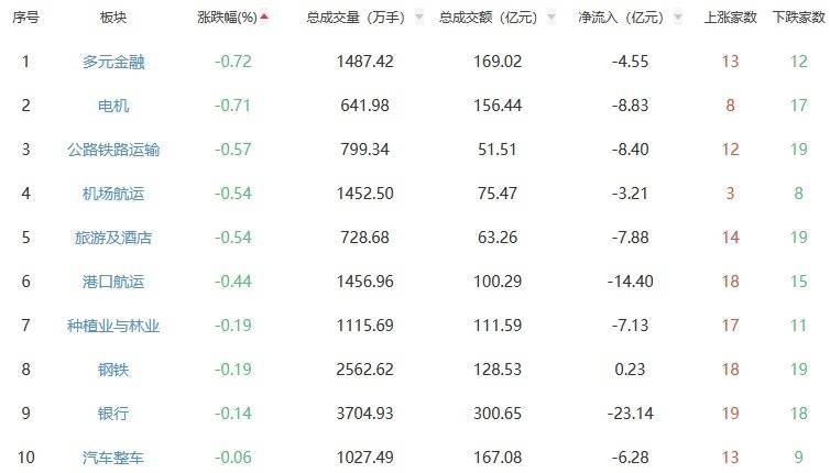 rA股市场板块涨跌幅排行